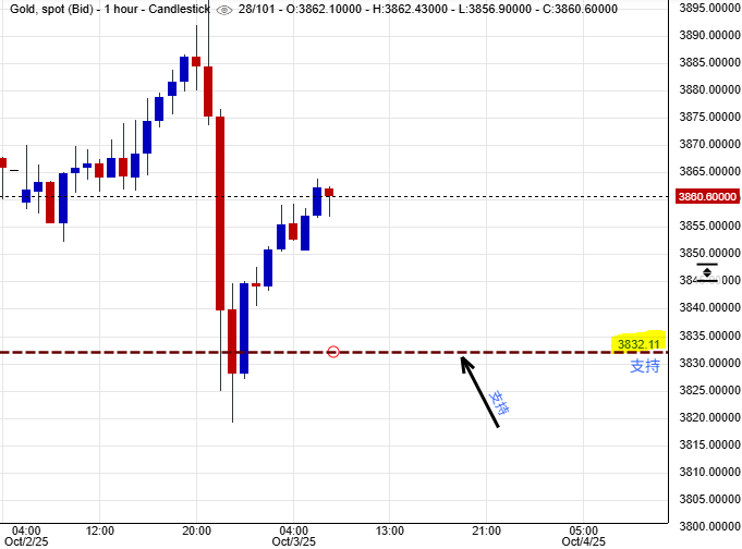 因应部分美国联邦政府部门停摆关系,9月份非农业就业人数这重磅级的就业市场数据结果,将不会在原定香港时间星期五晚公布。在欠缺这个数据作为联储局是否有必要积极减息的参考,投资者除了只好继续在消化日前出台的ADP私营机构新增职位数据结果极为不理想,而引伸至对联储局不会放慢减息步伐的预期之外,亦会把焦点放在买入黄金对冲美国联邦政府停摆的打后发展,所带出的避险因素上。故此,金价短期间仍然有力反复向好,可以在等待黄金价格完成新一轮的回吐整固后,进场入市吸纳黄金。