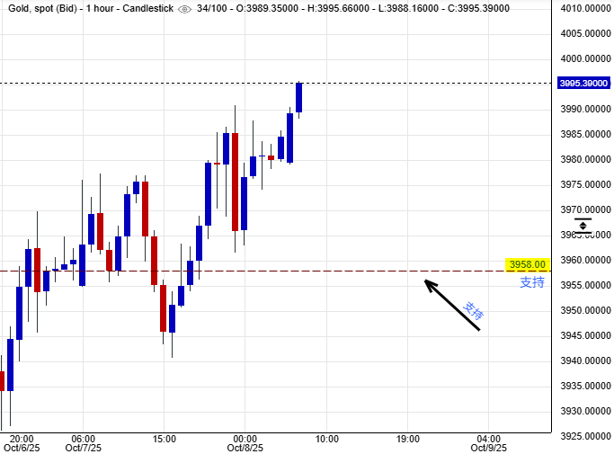 可以部署在$3,958美元左右建立好仓盘,短线看高金价一线至$4,021美元水平后止赚,止损在$3,948美元。
