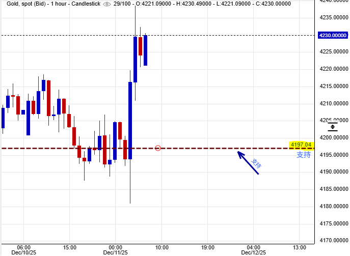 可以部署在$4,259美元左右建立淡仓盘,短线看淡金价一线至$4,197美元水平后止赚,止损在$4,271美元。