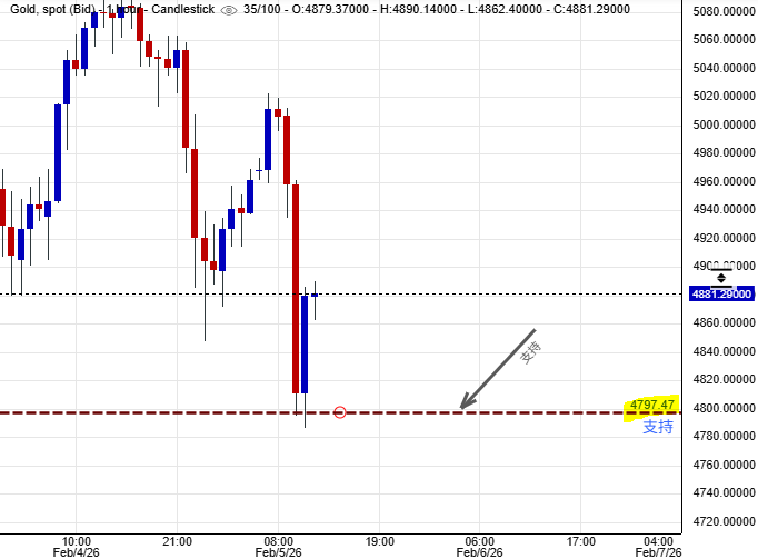 可以部署在$4,797美元左右建立好仓盘,短线看高金价一线至$5,080美元水平后止赚,止损在$4,777美元。