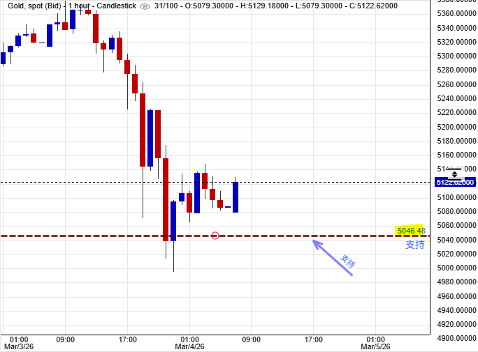 黄金价格昨日迎来一轮急速并大幅度的回吐整固,主要是因为投资者对伊朗局势将会有一段长时间的紧张化风险的担忧,故此纷纷在股票市场及黄金市场里套取现金为上策,金价更加一度跌穿$5,000美元才有趁低吸纳的动作进场。然而投资者追入黄金对冲伊朗以至区内局势进一步恶化的需求并不会全然消失,这因素对趁低吸纳黄金的动作又会有利好作用。