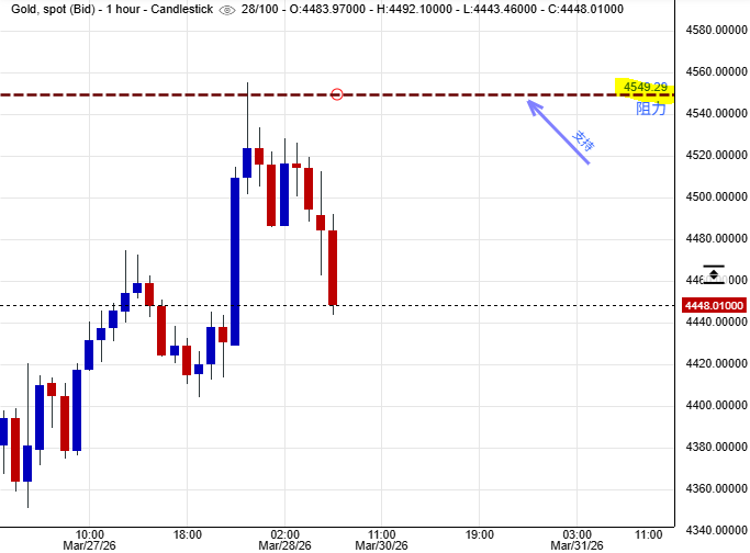 可以部署在$4,549美元左右建立淡仓盘,短线看淡金价一线至$4,356美元水平后止赚,止损在$4,569美元。