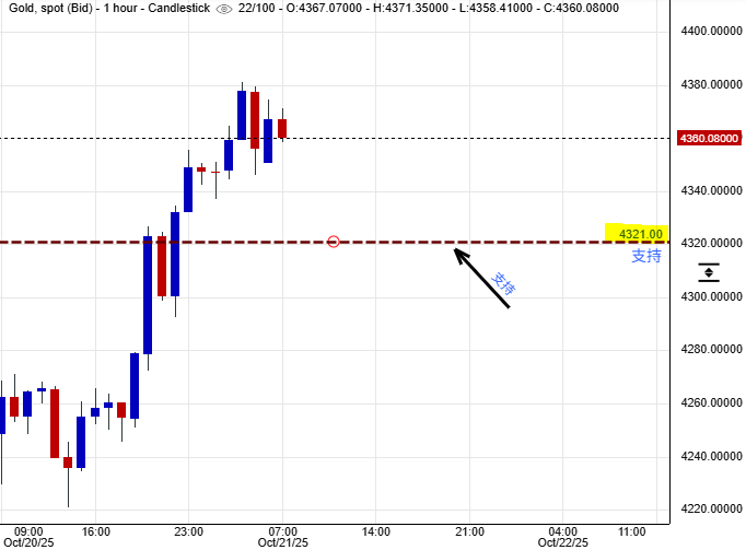 可以部署在$4,321美元左右建立好倉盤,短線看高金價一線至$4,422美元水平後止賺,止損在$4,306美元。