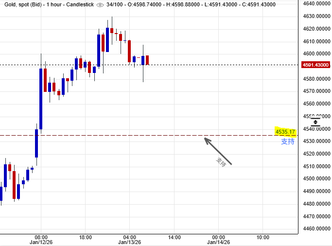 可以部署在$4,535美元左右建立好倉盤,短線看高金價一線至$4,623美元水平後止賺,止損在$4,523美元。