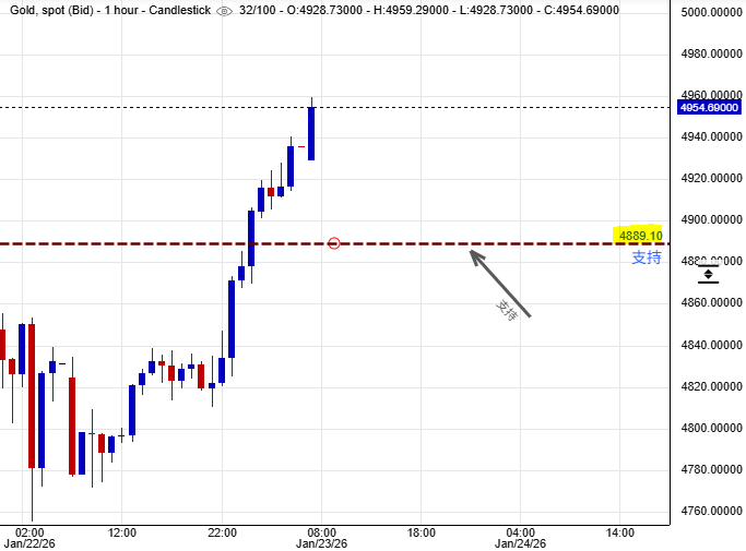 可以部署在$4,889美元左右建立好倉盤,短線看高金價一線至$4,997美元水平後止賺,止損在$4,877美元。