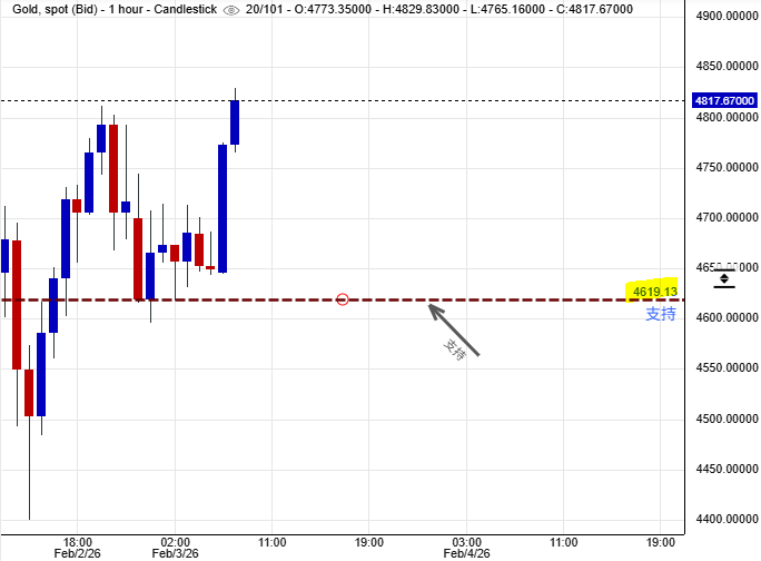 可以部署在$4,619美元左右建立好倉盤,短線看高金價一線至$4,911美元水平後止賺,止損在$4,599美元。
