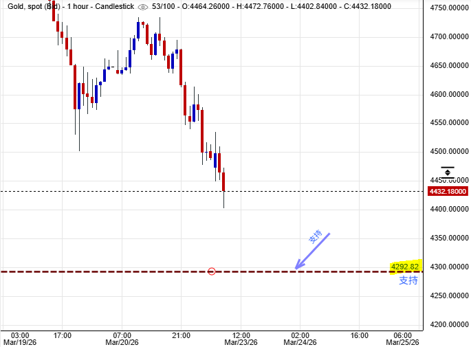 黃金價格一小時圖: