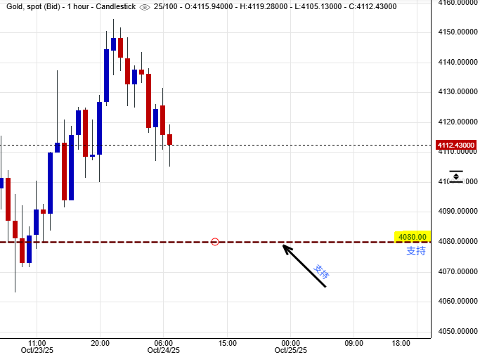 中國副總理何立峰將會在今天率代表團到馬來西亞,跟美國方面舉行經貿磋商。另一方面,美國白宮宣告總統特朗普,將會在下星期跟中國國家主席習近平會面,投資者對中美兩國關稅貿易戰暫時未有進一步惡化的情況下,應該會減少追捧黃金對沖相關風險的意欲,這事態發展有機會給予金價短線向下試探低位支撐力的壓力。