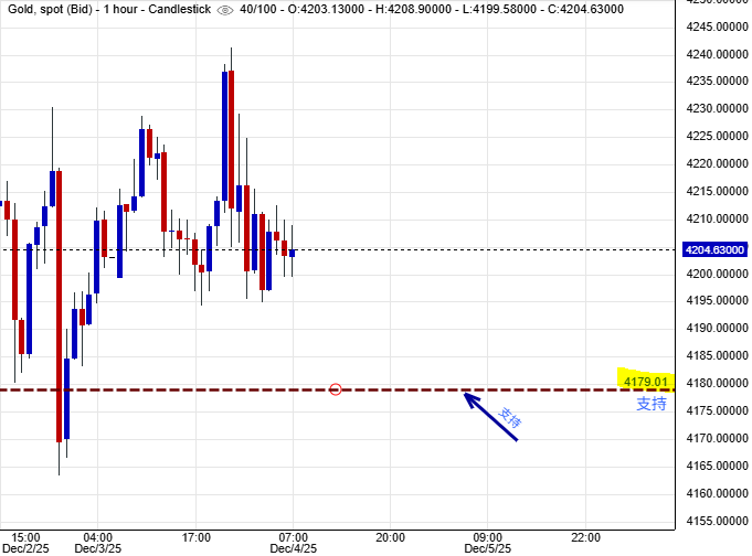 可以部署在$4,179美元左右建立好倉盤,短線看高金價一線至$4,248美元水平後止賺,止損在$4,167美元。