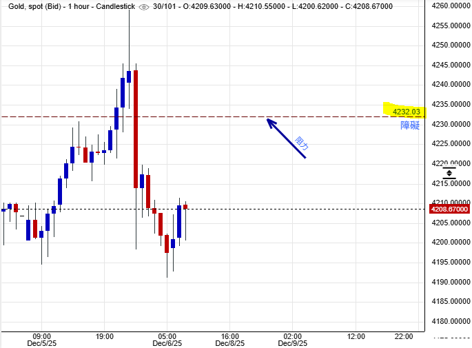 可以部署在$4,232美元左右建立淡倉盤,短線看淡金價一線至$4,160美元水平後止賺,止損在$4,244美元。