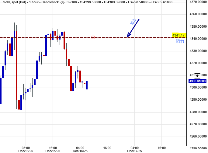 可以部署在$4,341美元左右建立淡倉盤,短線看淡金價一線至$4,277美元水平後止賺,止損在$4,353美元。