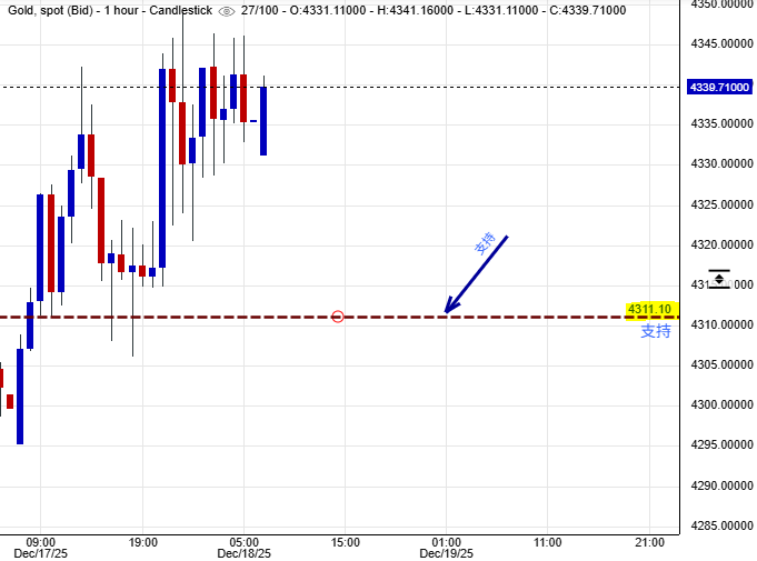 可以部署在$4,311美元左右建立好倉盤,短線看高金價一線至$4,369美元水平後止賺,止損在$4,299美元。