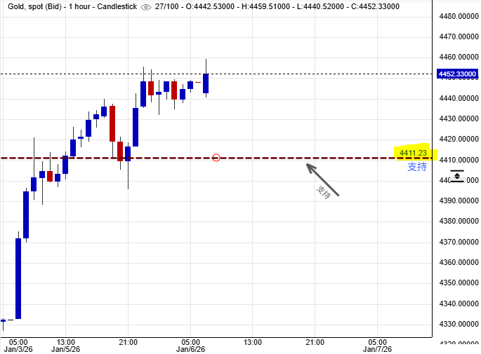 可以部署在$4,411美元左右建立好倉盤,短線看高金價一線至$4,497美元水平後止賺,止損在$4,399美元。