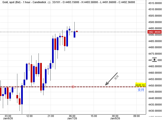 可以部署在$4,449美元左右建立好倉盤,短線看高金價一線至$4,536美元水平後止賺,止損在$4,437美元。
