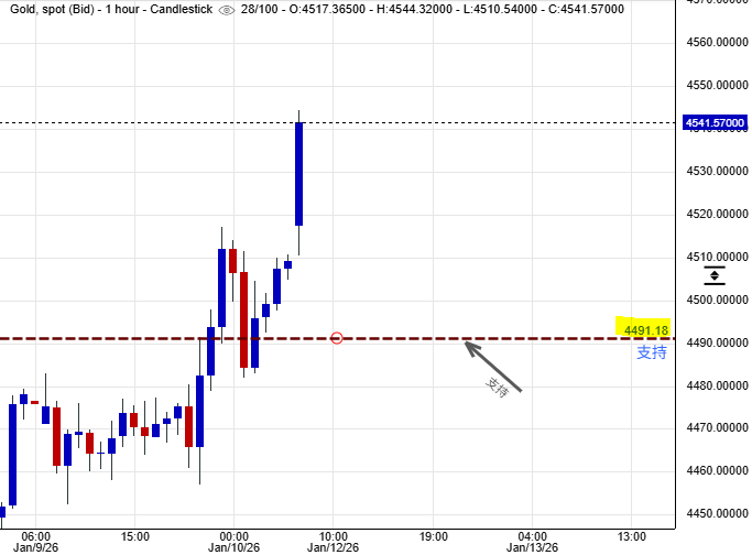 可以部署在$4,491美元左右建立好倉盤,短線看高金價一線至$4,619美元水平後止賺,止損在$4,479美元。