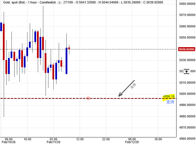 可以部署在$4,996美元左右建立好倉盤,短線看高金價一線至$5,093美元水平後止賺,止損在$4,981美元。