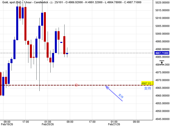可以部署在$4,967美元左右建立好倉盤,短線看高金價一線至$5,044美元水平後止賺,止損在$4,952美元。