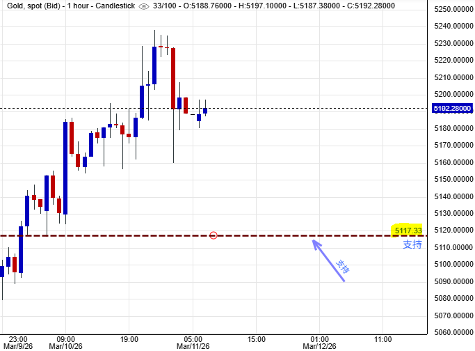 除非美國、以色列,以及伊朗突然釋放出將會快速地停火的訊號,否則金價短期間應該能夠在$5,117美元水平找到支持。