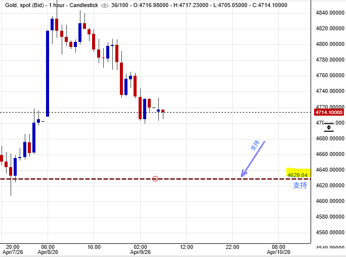 美國及伊朗兩國同意停火兩星期,最終談判後的結局如何,雖不能太過樂觀,但也可以正面的去推斷,談判其中一個成果是霍爾木兹海峽航道有機會重新百分百開啟。然而,這邊廂以色列卻加大了對黎巴嫩境內的軍事襲擊,中東的亂局能否再一次擴大投資者買入黃金作為資金避難所的需求,要視乎市場人士對環球通脹會不會就中東局勢的不穩定而急速上升。故此,金價短期間雖然能夠受惠於投資者減少了手持現金為主要策略,而反覆向好,然而,只要投資者增加了對聯儲局,以至各國央行是不會輕易否定加息需要的疑慮的話,這利率有機會上行的預期,對金價應該會構成下試低位支撐力的拖累。