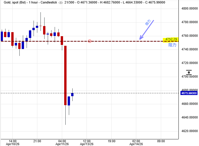 可以部署在$4,752美元左右建立淡倉盤,短線看淡金價一線至$4,544美元水平後止賺,止損在$4,772美元。