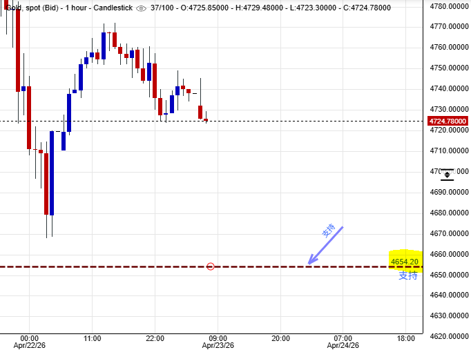 可以部署在$4,654美元左右建立好倉盤,短線看高金價一線至$4,804美元水平後止賺,止損在$4,634美元。